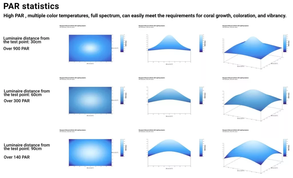 Az E8-150 fejlett multispektrális technológiájának köszönhetően teljes és testreszabható fényspektrumot biztosít, amely tökéletesen megfelel a korallok és tengeri élőlények igényeinek.