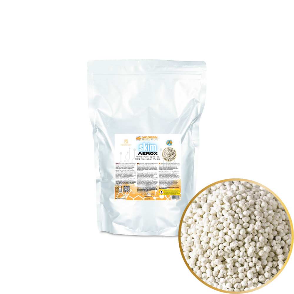 Skim AEROX Ultra-Pure Spheres CO₂ Scrubber Media A Skim AEROX Ultra-Pure Spheres CO₂ Scrubber Media egy speciális, ultra-tiszta, orvosi minőségű adszorbens anyag, amelyet kifejezetten tengeri (reef) akváriumok számára fejlesztettek. A fehérjehabzó (protein skimmer) levegőbemenetére csatlakoztatva hatékonyan eltávolítja a beáramló levegő CO₂-tartalmát, így stabilabb és optimálisabb környezetet biztosít az érzékeny, nagy igényű korallok számára. Miért érdemes használni? A levegő CO₂-szintjének csökkentésével a Skim AEROX: Stabilizálja és emeli az akvárium pH-értékét, javítva a rendszer általános vízkémiáját Mérsékli a nappali és éjszakai pH-ingadozást, kiegyensúlyozottabb, kevésbé stresszes környezetet teremtve az élőlények számára Támogatja az SPS, LPS és lágykorallok növekedését, színintenzitását és mészváz-képződését Segít csökkenteni a nem kívánt algák és cianobaktériumok megjelenésének esélyét a stabilabb pH és a CO₂-eredetű egyensúlytalanságok mérséklésével Okos, könnyen ellenőrizhető működés A gömb alakú szemcsék fehérről ibolyaszínűre változnak, amikor a töltet kimerülőben van. Ez az egyértelmű színváltozás megkönnyíti a karbantartást és kiszámíthatóvá teszi a cserét. Ajánlott használat Helyezzen 750–1000 ml Skim AEROX töltetet egy megfelelő CO₂ scrubber reaktorba. A reaktort közvetlenül a fehérjehabzó levegőbemenetére csatlakoztassa. Egy 500–750 literes reef akváriumban a töltet általában 4–6 hétig hatékony (a helyiség CO₂-szintjétől és a skimmer levegőáramlásától függően). A csere optimális időpontját a töltet színének változása és az akvárium pH-értékének rendszeres ellenőrzése alapján határozza meg. Fontos tudnivalók Kizárólag levegőben, a skimmer levegőbemenetén alkalmazható Ne használja közvetlenül az akvárium vizében Felbontás után a tasakot gondosan zárja vissza Hűvös, száraz helyen tárolja a maximális hatékonyság megőrzése érdekében A Skim AEROX Ultra-Pure Spheres CO₂ Scrubber Media professzionális megoldást kínál azoknak a tengeri akvaristáknak, akik stabilabb pH-értéket, kisebb nappali-éjszakai ingadozást, egészségesebb korallokat és kevesebb algásodási problémát szeretnének elérni akváriumukban.