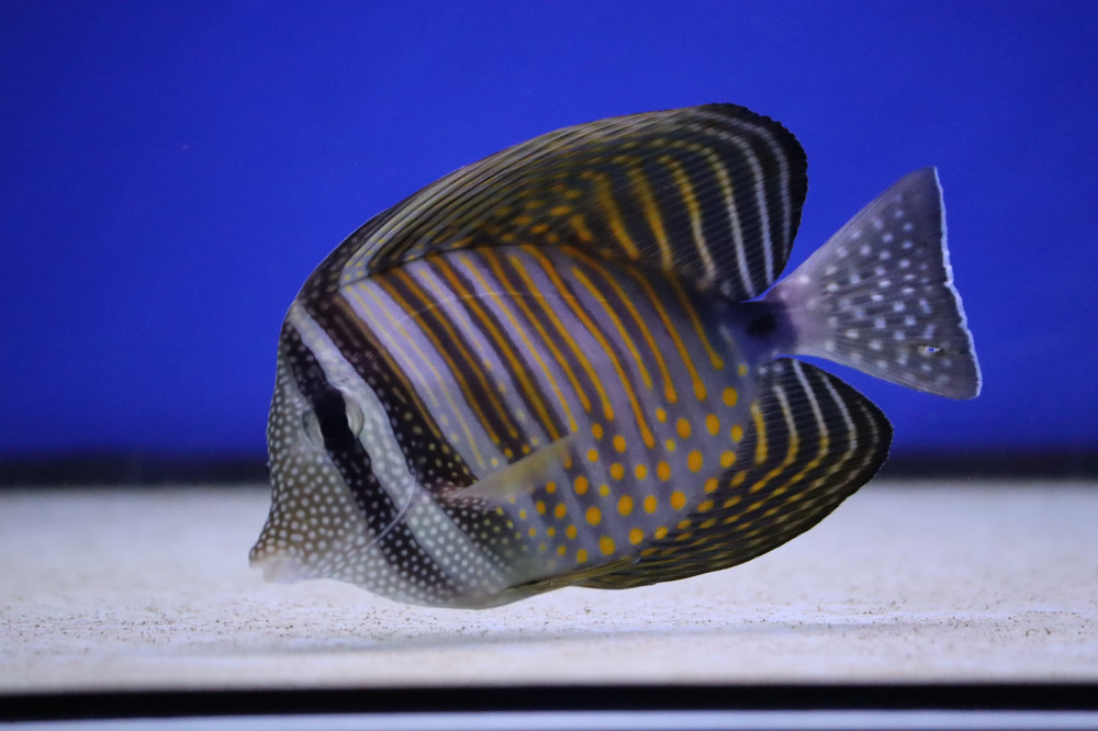 Ez a halfaj népszerű választás az akvaristák körében – és ha megnézzük, nem nehéz megérteni, miért. A Zebrasoma desjardinii nagyon hasonlít a Zebrasoma veliferum-hoz. A legegyszerűbb módja annak, hogy megkülönböztessük őket: a veliferum farka átlátszó/sárgás színű, testén pedig nagyon finom vonalak láthatók. Ezzel szemben a desjardinii erőteljesebb csíkokat és pöttyöket visel, farka pedig sötét színű, rajta szintén csíkokkal és pöttyökkel.
