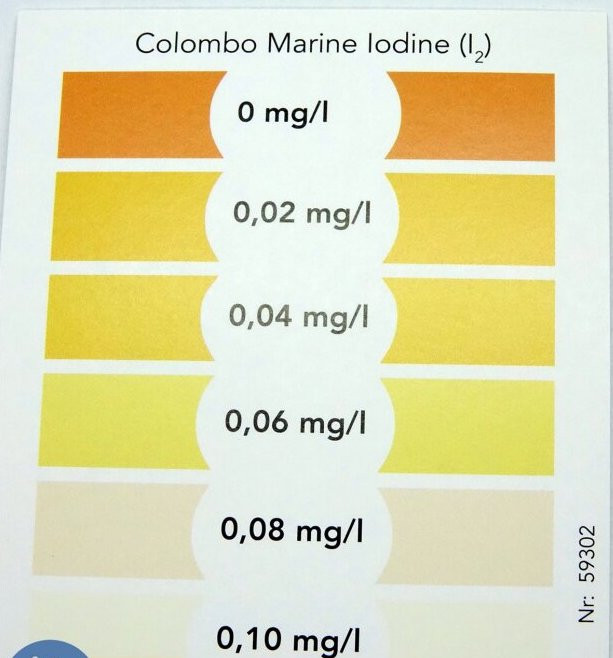 A Colombo Marine Iodine Test (1. szín) pontosan teszteli a víz jódtartalmát.